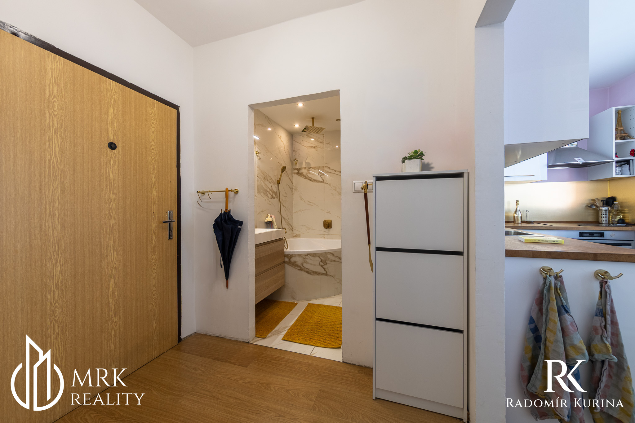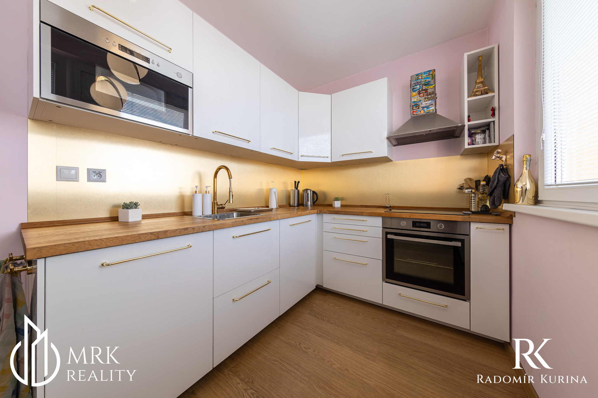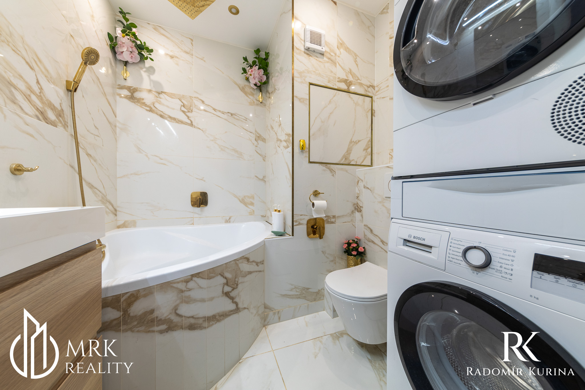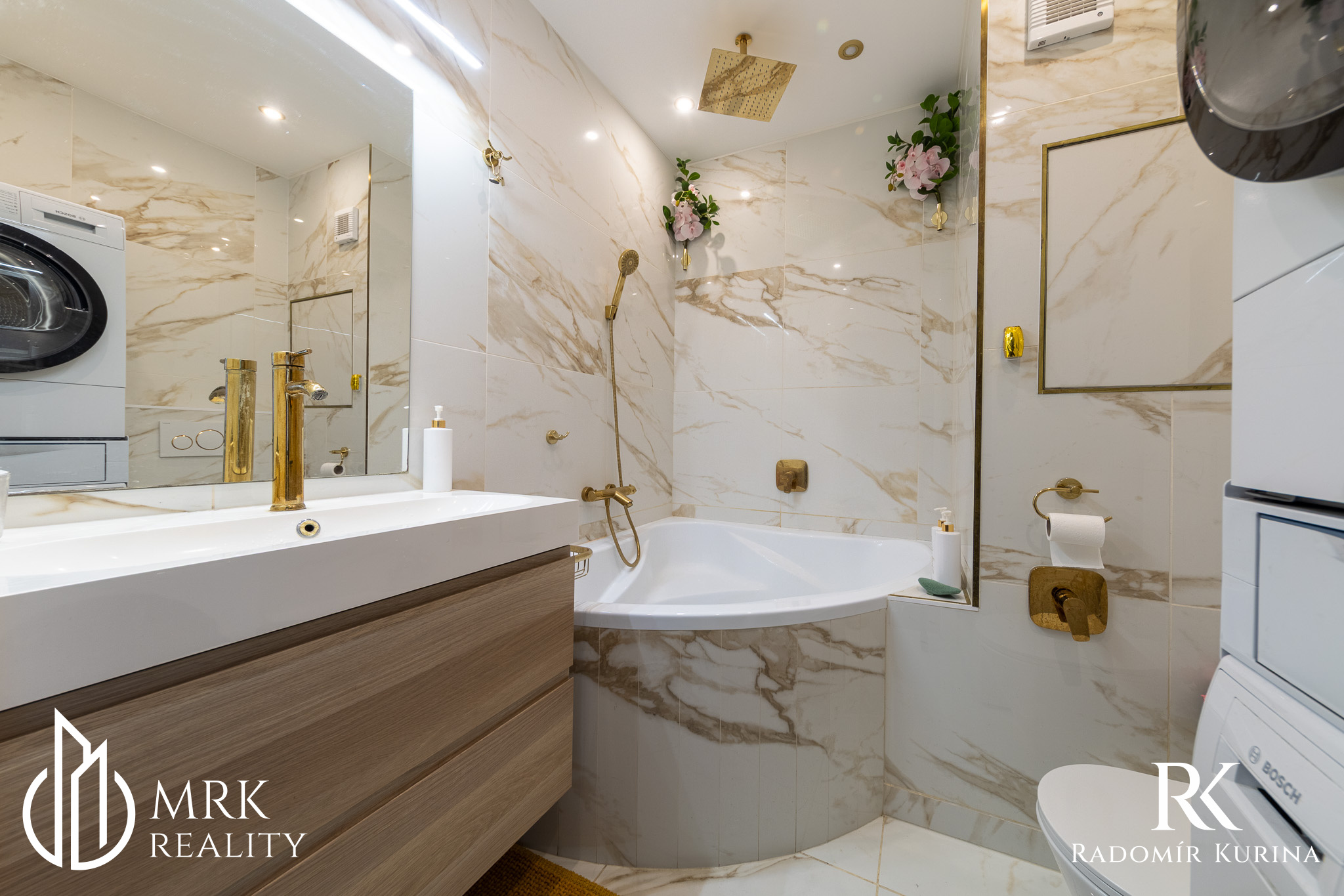 - dizajn v modernom štýle s prvkami mramoru a zlatých detailov