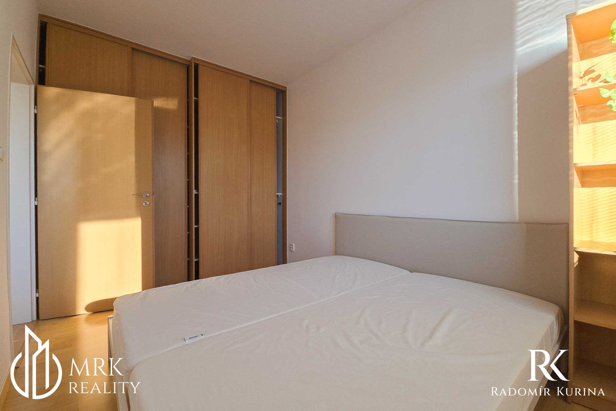 Zo spoločenskej časti sa vstupuje do spálne, vybavenej vstavanou skriňou a klimatizáciou.
