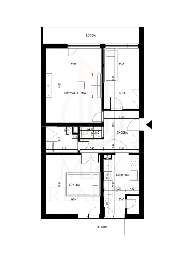 Loggia – s výmerou cca 6m² (zasklená bezrámovým systémom, orientovaná do tichého vnútrobloku),