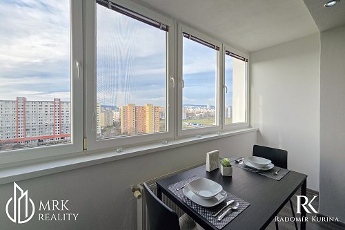 MRK reality, realitná kancelária pôsobiaca na trhu od roku 1999, vám exkluzívne ponúka na predaj kompletne zariadenú 2 garsónku s 2 zasklenými loggiami, klimatizáciou, nízkymi mesačnými nákladmi a čerstvo vymaľovaným interiérom na Topoľčianskej ulici v Bratislave – Petržalke.