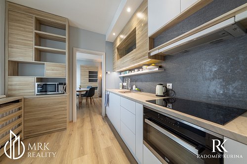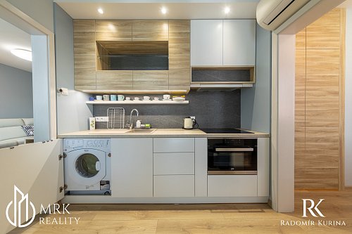 kuchyňa: indukčná varná doska, teplovzdušná rúra, mikrovlnka, práčka, základný inventár